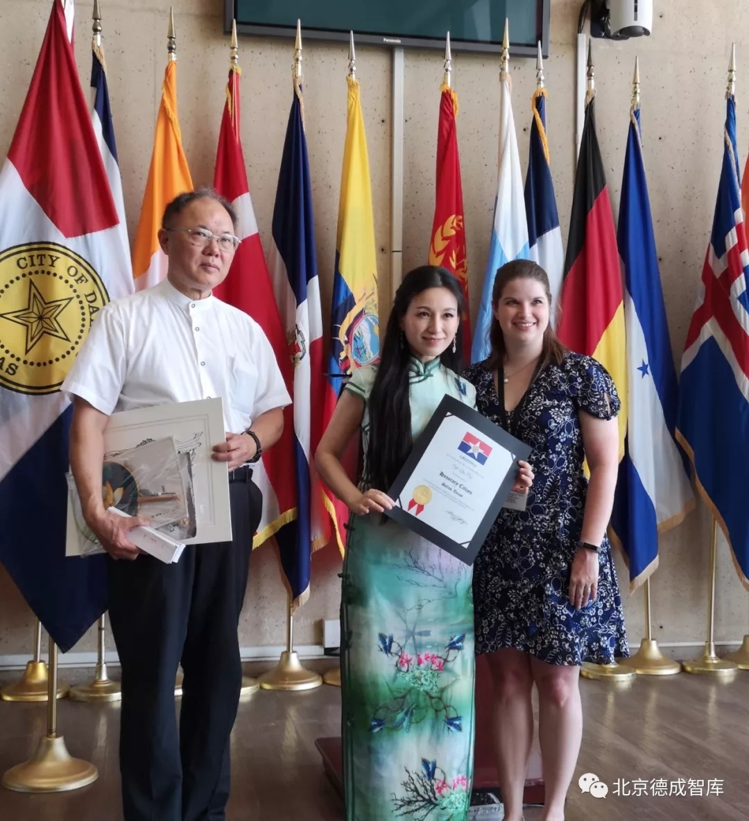 曹軼秋女士在達(dá)拉斯市政廳被授予榮譽(yù)市民稱號